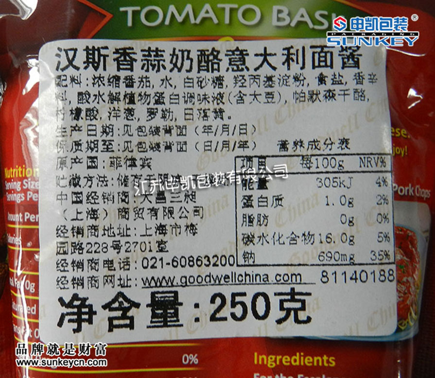 意大利面醬包裝袋