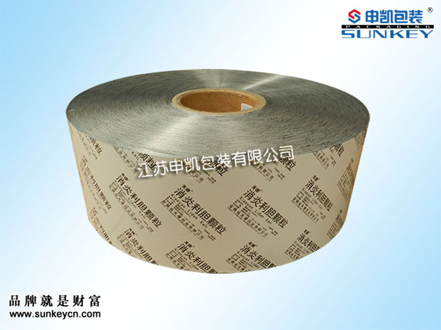 材質:(可根據客戶需求定制)說明:藥用顆粒卷膜材質一般是由PET/AL/PE組成,經過印刷-檢品-復合-分切多層工藝。